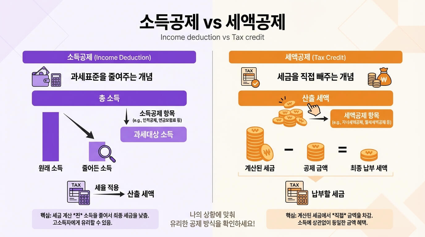 💡 꿀팁: 세액공제는 '실제 납부할 세금'을 줄여주니까, 누구에게나 확실한 효과가 있어요!